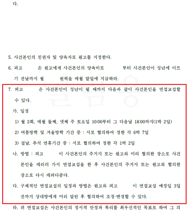 – 면접교섭 조건 변경 검토